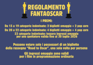 Extra . Extra cinema . In Programma dal:16/03/2026 al: 13/04/2026 Lista vincitori Road to Oscar Info: Orari: Contattaci su Facebook Condividi:Share on X (Twitter)Share on FacebookShare on LinkedInShare on Email